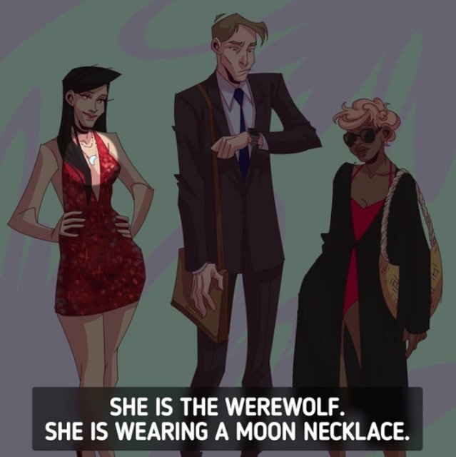 Soldaki kadın kurt adam çünkü bir ay kolyesi takıyor.
