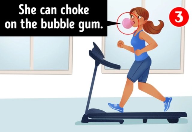 3 numaralı kadın çünkü koşarken aynı anda sakız çiğniyor ve bu şekilde boğulabilir.