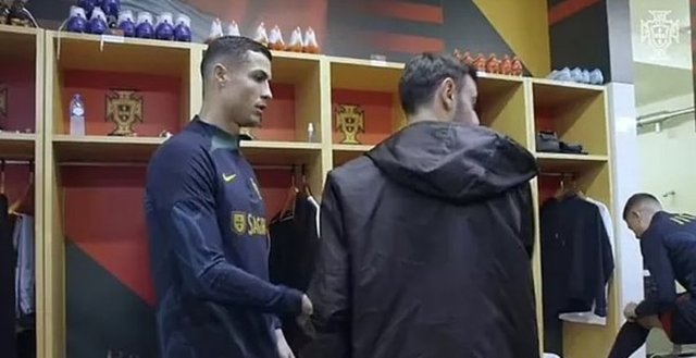 Cristiano Ronaldo ile Bruno Fernandes'in soyunma odasındaki halleri dünya basınında çok konuşuldu! Sosyal medya ayağa kalktı