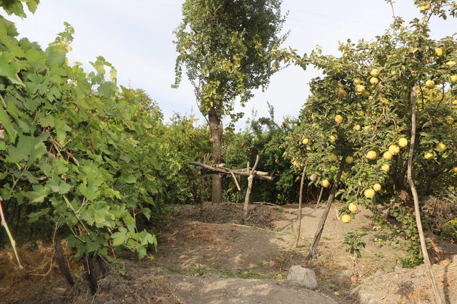 Bahçemizi yepyeni yaptık. Her türlü sebzemiz, meyvemiz var. İncir, erik, nar, şeftali ve birçok meyve. Bir kısmını satıyoruz, bir kısmını akrabalarımıza, komşularımıza veriyoruz.