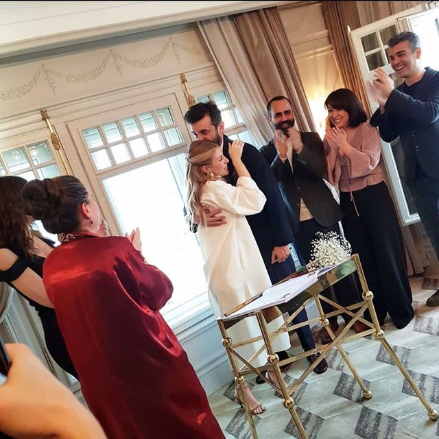 Ortaköy'deki bir otelde gerçekleşen nikah törenine Defne Samyeli, Aras Bulut İynemli, Rıza Kocaoğlu ve Caner Cindoruk gibi ünlü isimler katıldı.