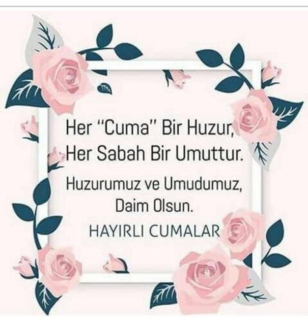 Yüce Allah mübarek cuma hürmetine hayatın şereflisini, rızkın bereketlisini, vücudun sıhhatlisini, ahlakın faziletlisini, evladın edeplisini nasip ve müesser eylesin. Ülkemize selamet ve dirlik versin inşallah. Hayrırlı Nurlu Cumalar.