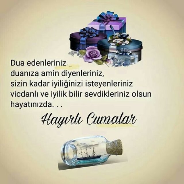 Ettiğin her dua derdine deva, sağlığına şifa, gözüne nur, gönlüne huzur, ailene ve sevdiklerine huzur getirsin. Hayırlı Cumalar.