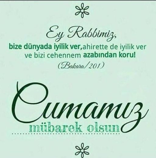 - Ey alemleri yaratan Rabbimiz! Bizi İslam"dan ve Kur"andan ayırma. Bizi daima sırat-ı müstakimde tut. İslâm nurunu söndürmek isteyenlere fırsat verme. Bizim yüzümüzden insanları helak etme. Hayırlı Cumalar