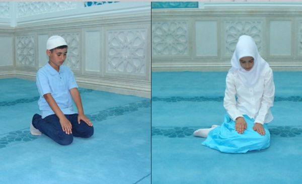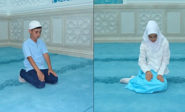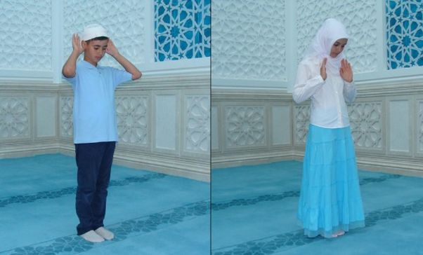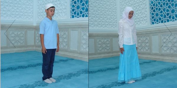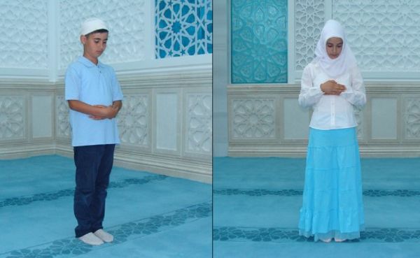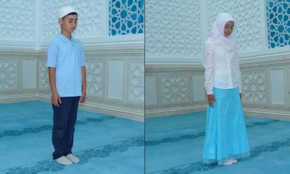 Örnek olarak sabah namazının iki rek’at farzının kılınışı resimlerle anlatılmış, erkek ve kadınların farklı hareketleri belirtilmiştir. İki rek’atli bir namazdaki hareketler ile diğer namazlardaki hareketler arasında fark olmadığından onların resimlerle anlatılmasına gerek duyulmamıştır.Sabah Namazının Farzının Kılınışı:Birinci Rek’at: 1) Ayakların arası dört parmak açıklıkta ve parmak uçları kıbleye doğru gelecek şekilde ayakta kıbleye dönülür.2) Kamet getirilir. (Erkekler için)“Niyet ettim Allah rızası için bugünkü sabah namazının farzını kılmaya” diye niyet edilir.
