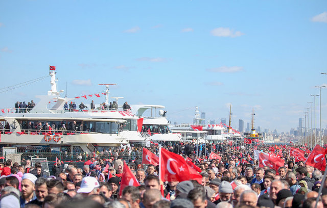 Cumhurbaşkanı Erdoğan ve MHP Genel Başkanı Bahçeli, 31 Mart yerel seçimlerine 1 hafta kala Yenikapı'da 'Büyük İstanbul Mitingi'ni düzenledi. Cumhur İttifakı İstanbul Büyükşehir Belediye Başkan adayı Binali Yıldırım konuşmasında, "İstanbul'u dünyanın yıldızı yapacağız" dedi. Yıldırım'ın arkasından vatandaşlara seslenen MHP lideri Bahçeli ise, "İstanbul'da zilletin öne çıkmasına müsaade edilmemelidir. Zillet İttifakı beladır, Cumhur İttifakı bekadır. 31 Mart'ta başarmaktan başka seçeneğimiz yoktur" diye konuştu. Cumhurbaşkanı Erdoğan ise döviz kurundaki dalgalanma hakkında, "Ey finans sektörü içinde olanlar kalkıp da piyasadan dövizleri toplayıp, şöyle böyle olacak diyerek provokatif işler içine giriyorsanız çok ağır bedel ödersiniz. Hepinizin kimliğini, neler yaptığını biliyoruz. BDDK bazı adımlar attı, seçim sonrası bunun faturasını ağır keseceğiz" dedi