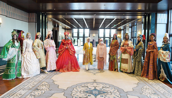 Emine Erdoğan ve Kraliçe Tunku Azizah, ardından olgunlaşma enstitülerince Türkiye'nin çeşitli yerlerine özgü kumaşlarla hazırlanan kaftanların sergilendiği defileyi izledi.