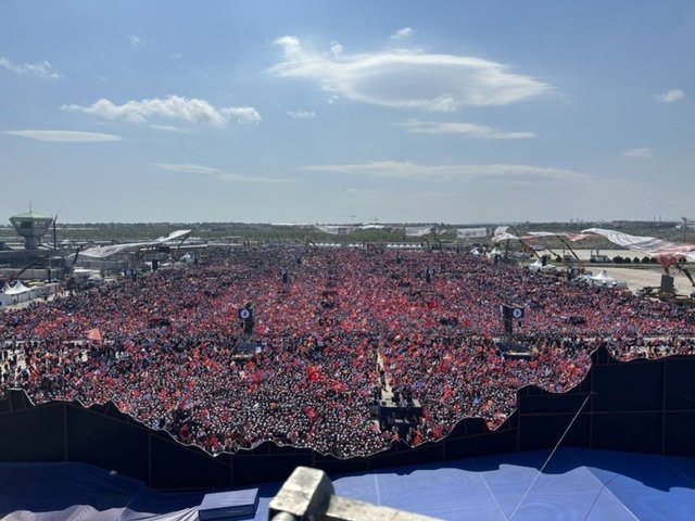 14 Mayıs'ta gerçekleşecek Cumhurbaşkanı ve 28. Dönem Milletvekili Seçimleri için geri sayım sürüyor. Genel seçimlere bir hafta kala, Cumhurbaşkanı adayları mitinglerine devam ediyor. Bu kapsamda Cumhur İttifakı'nın adayı Cumhurbaşkanı Erdoğan, 7 Mayıs 2023 Pazar gerçekleşen AK Parti'nin "Büyük İstanbul Mitingi"ne katılım gösterdi. Saat 16.30 itibarı başlayan mitingde, Cumhurbaşkanı Erdoğan önemli açıklamalar yaptı. Erdoğan, mitinge katılım gösteren kişi sayısı hakkında da bilgi verdi.