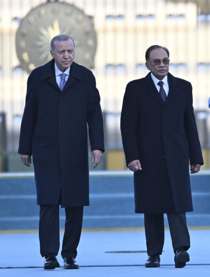 Cumhurbaşkanı Erdoğan, Cumhurbaşkanlığı Külliyesi'nde, Malezya Başbakanı Enver İbrahim'i resmi törenle karşıladı. İki lider, görüşmenin ardından ortak basın toplantısında açıklamalarda bulundu. Cumhurbaşkanı Erdoğan, iki ülke arasındaki ticaret hacmi hedefinin 10 milyar dolar olduğunu ifade etti. Enver İbrahim ise "Dünyanın geneli ve özellikle İslam dünyasına yapmış olduğunuz liderlikten dolayı teşekkür ediyorum." diye konuştu. Cumhurbaşkanı Erdoğan, Malezya Başbakanı Enver İbrahim'e Devlet Nişanı tevcih etti.