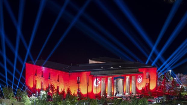 Binanın dış yüzeyi tamamen kırmızı ışıkla kaplanırken, ana giriş kapısının sağ ve sol bölümlerine ise beyaz ışıkla ay yıldız ve Cumhurbaşkanlığı forsu yansıtılıyor.