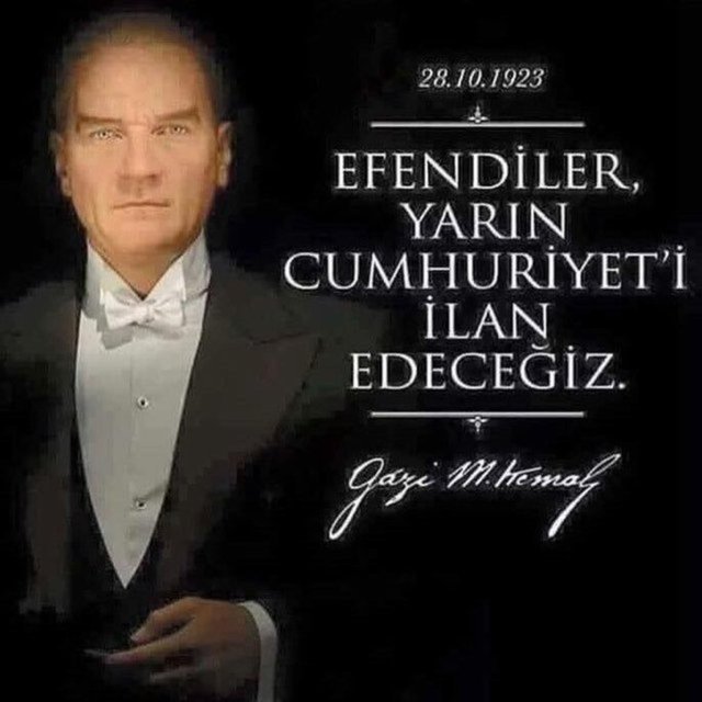 Atatürk'ün önderliğinde büyük Türk Milleti'nin kanı, canı ve sonsuz emekleriyle kurulan Cumhuriyetimizi, tüm değerleriyle sonsuza kadar yaşatmak hepimizin vazgeçilmez ortak sorumluluğudur. 29 Ekim Cumhuriyet Bayramınız Kutlu Olsun…