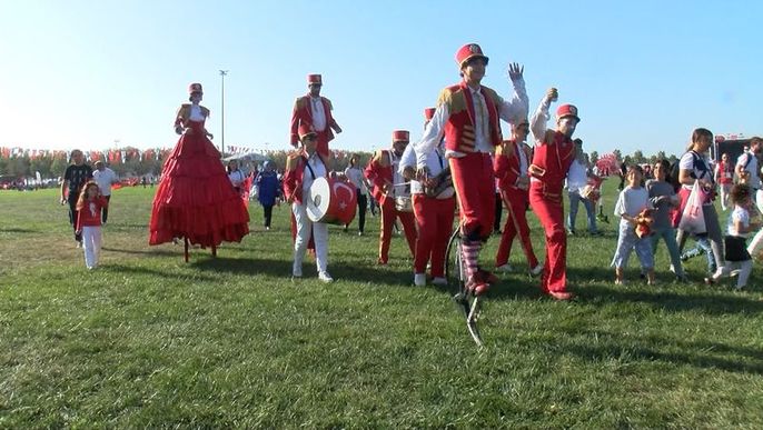 Etkinlik alanına akın eden vatandaşlar ellerindeki bayraklarla çalan şarkılara eşlik etti. Çocukların da katıldığı etkinlikte vatandaşlar, bando takımı eşliğinde marşlar söyleyerek, bol bol fotoğraf çektirdi. İstanbul Büyükşehir Belediyesi (İBB) tarafından düzenlenen etkinlikte bugün; Gazapizm, Melike Şahin, Madrigal, Ozbi, Selçuk Balcı, Nova Norda ve Kolektif İstanbul sahne alacak.