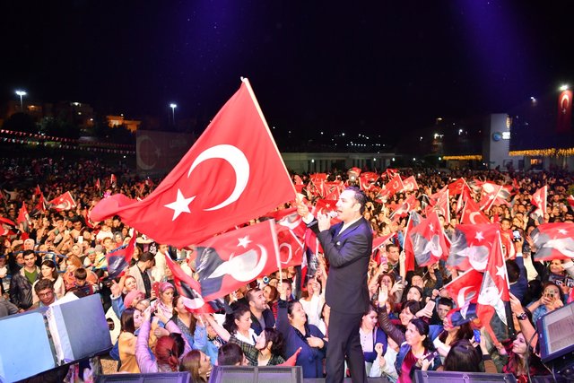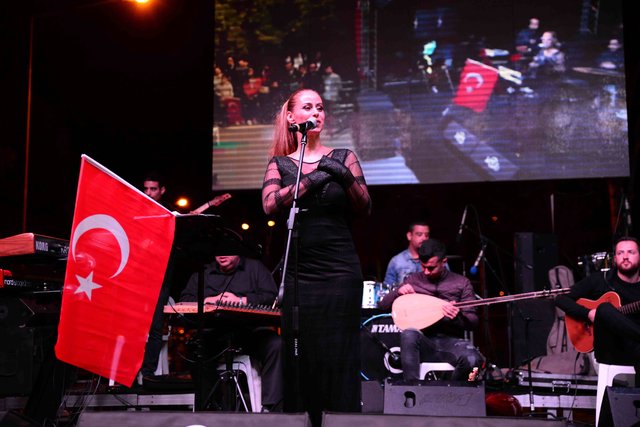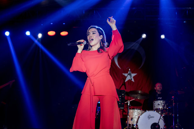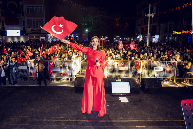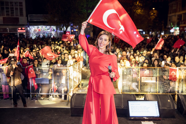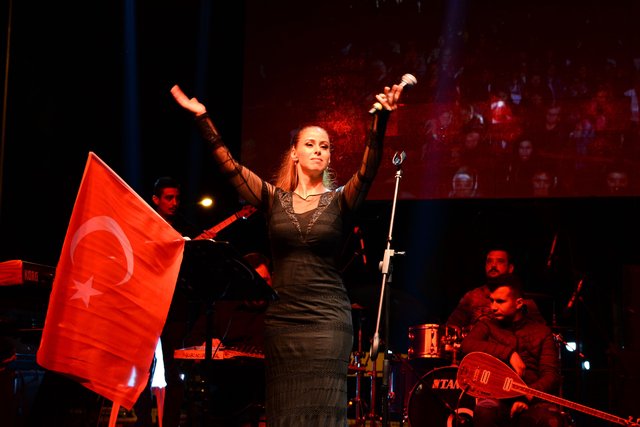 Ünlü sanatçı, “Nefesimiz ve hevesimiz hep Cumhuriyet'ten. Bir Cumhuriyet sevdalısı olarak sizlerin önünde bana şarkılarımı söyleyebilme, duygu ve düşüncelerimizi korkmadan özgürce paylaşabilme imkanı tanıdığı için başta Gazi Mustafa Kemal Atatürk olmak üzere bu uğurda canını ortaya koymuş tüm silah arkadaşlarına teşekkürü bir borç bilirim. Ben bu ülkenin önce bir vatandaşı ardından sanatçısı olmaktan gurur duyuyorum. Yaşasın Cumhuriyet!” sözlerinin ardından dakikalarca alkışlandı.