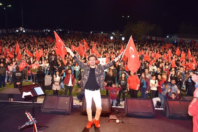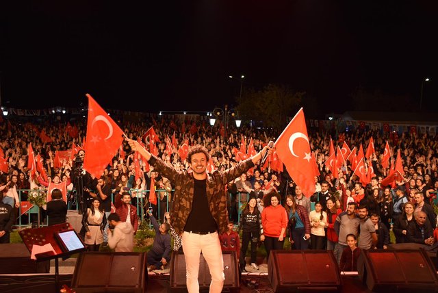 Konserinin sonlarına doğru sahneden inerek kendisini dinlemeye gelen binlerce hayranıyla birlikte şarkı söyleyen genç sanatçı, hayranlarının selfie isteklerini de geri çevirmeyip konser alanını boydan boya gezerek sempatik tavırlar sergiledi. Müzikseverlerin arasında dolaşırken bir yandan da İzmir Marşı'nı seslendirerek 95. yıl kutlamalarını adeta bir şölene dönüştürdü.