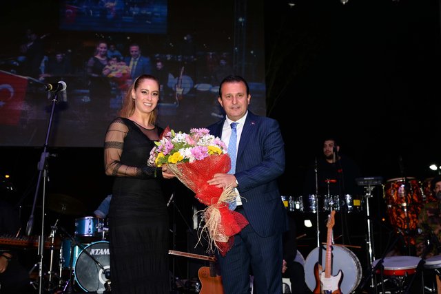 Cumhuriyet Bayramı dolayısıyla sahneye kırmızı beyaz bir kıyafetle çıkan Betül Demir'e Fatsa Belediye Başkanı Muharrem Aktepe plaket ve çiçek verdi. Demir, binlerce kişiye unutulmaz bir akşam yaşattı.