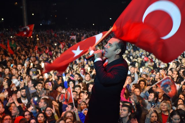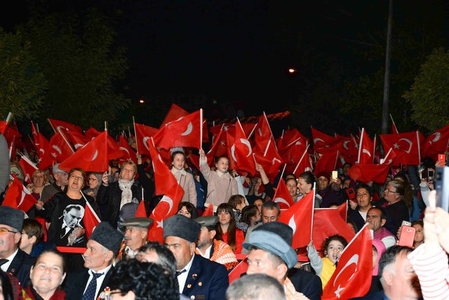 Saat 19.00'da başlayan Cumhuriyet yürüyüşü, Barbaros Meydanı'nda Leman Sam ve Ege konseri ile devam etti. Binlerce insanın akın ettiği geceye Ege'nin "Mustafa Kemal'in Askerleriyiz" marşı damgasını vurdu.