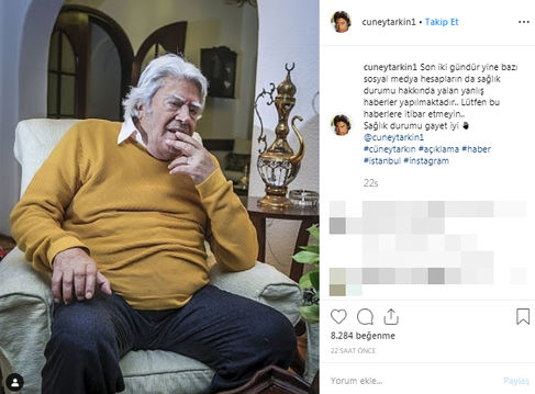 Sosyal medyada Cüneyt Arkın'ın sağlık durumu hakkında yapılan haberlere, Arkın'ın Instagram hesabı üzerinden açıklama yapıldı. İşte usta sanatçının sosyal medya hesabından yapılan o açıklama: