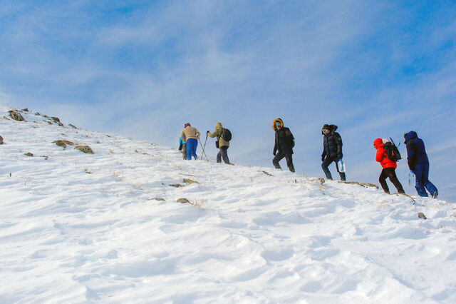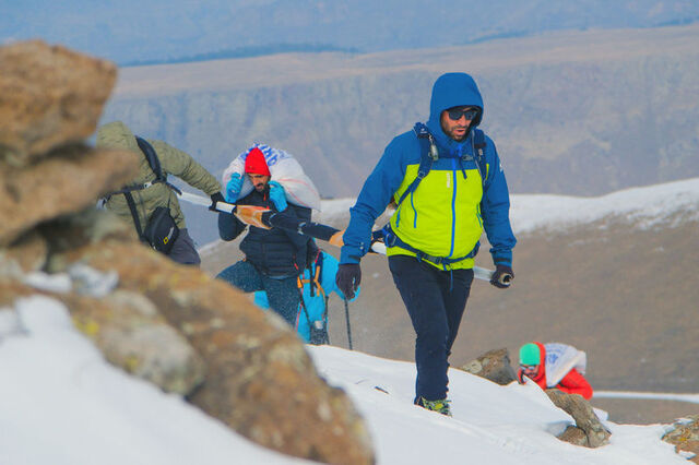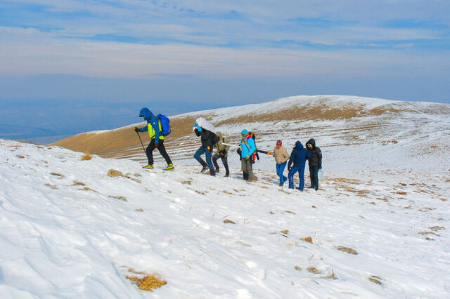 Kars'ın Selim ilçesinin Sarıgün köyünde bir araya gelen dağcılar, Ardahan, Kars ve Erzurum sınırlarına uzanan Allahuekber Dağları'nda zirve tırmanışı için yürüyüşe başladı.