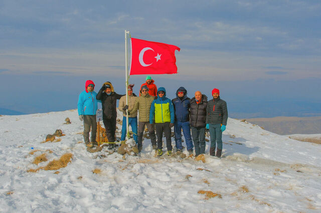 Kar, soğuk hava ve şiddetli rüzgara rağmen zirveye ulaşmayı başaran dağcılar, 3 bin 180 rakımda Türk bayrağını dalgalandırdı, şehitler için dua etti.