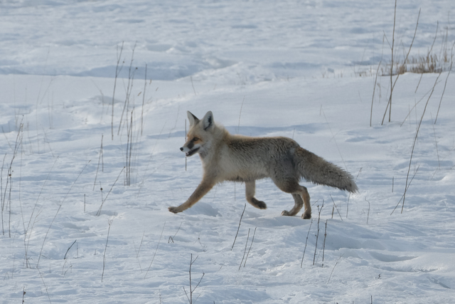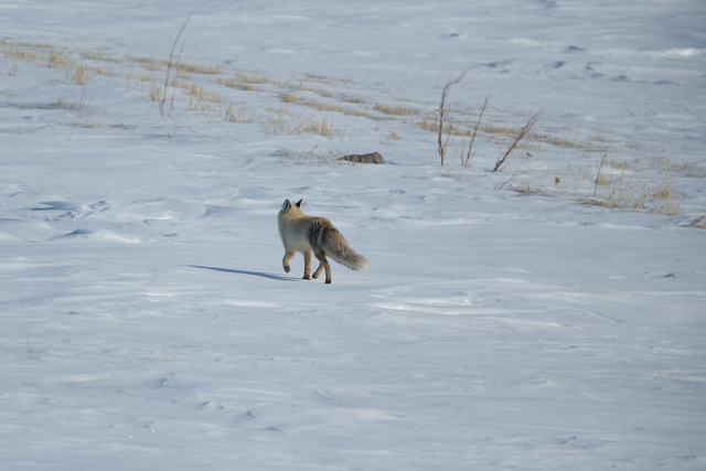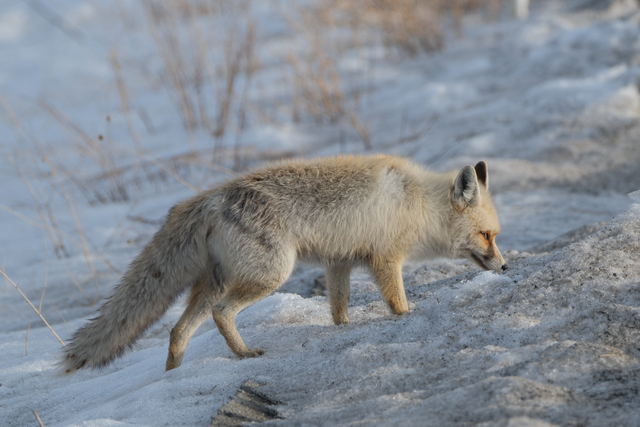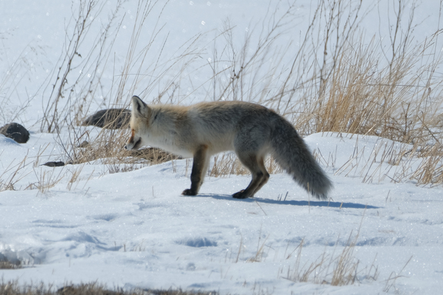 Susuz ilçesinde kar kalınlığının bir metreyi bulduğu arazide yiyecek bulma çabasındaki kızıl tilkileri AA görüntüledi.