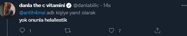Bu gönderinin üzerine Danla Bilic'in bir takipçisi "Alper Potuk'u" yazınca, Bilic'ten itiraf geldi. Ünlü isim, Alper Potuk ile helalleştiğini belirterek; "Yok onunla helalleştik" dedi.