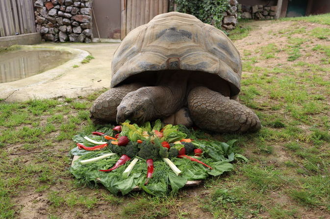 Faruk Yalçın Hayvanat Bahçesi'nde görevli Eğitim ve Pazarlama Müdürü Tuğçe Özgü, gazetecilere, 103 yaşına giren Tuki'ye onun sevdiği sebze ve meyvelerden sürpriz hazırladıklarını söyledi.