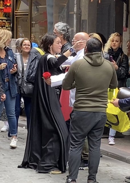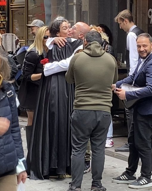 Birce Akalay, sürpriz yaparak arkadaşının çok sevdiği Star Wars serisindeki Darth Vader karakterinin kostümünü giydi. Herkesin şaşkın bakışları arasında Roman havası oynayarak kutlamanın yapıldığı sokağa gelen Akalay, eğlenceli anların yaşanmasına neden oldu.