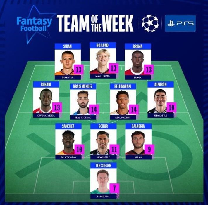 UEFA Şampiyonlar Ligi'nde ikinci haftanın en iyi 11'i şöyle: