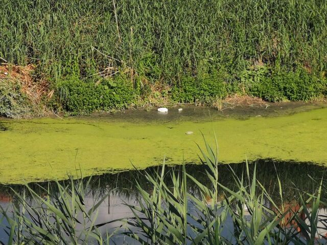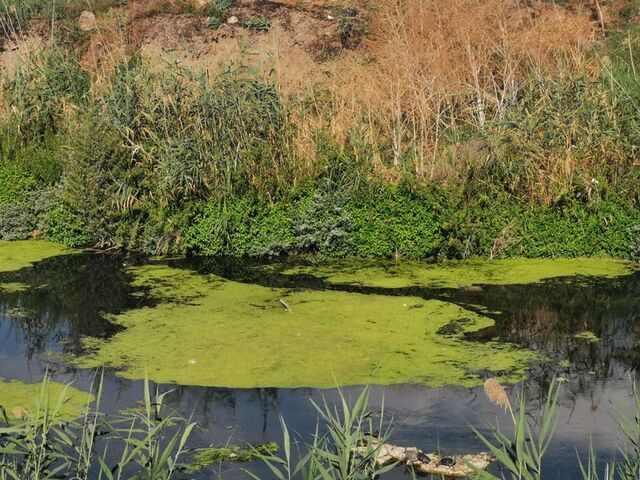 Kırklareli'nin kuraklık nedeniyle debisi düşen Lüleburgaz Deresi'nin yüzeyi yosunla kaplandı