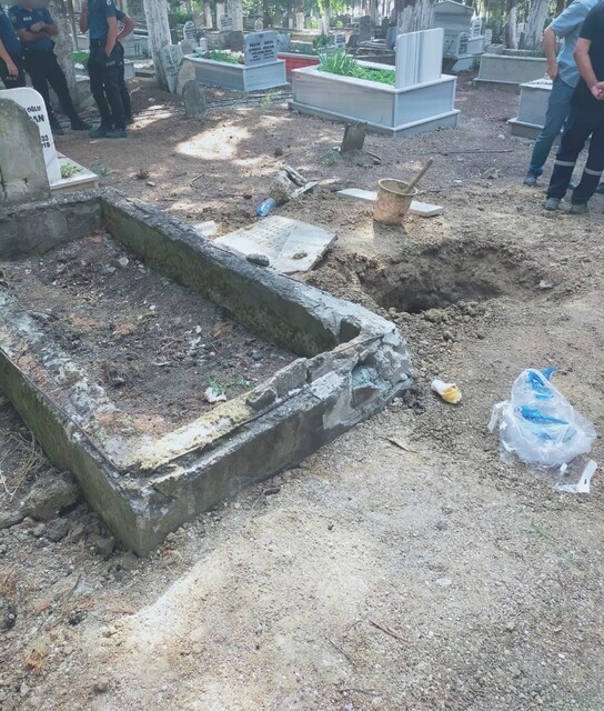 Mezarlığa bir araçla geldiği anlaşılan ve kazıda kullandığı aletlere el konulan E.A, gözaltına alınarak emniyet müdürlüğüne götürüldü.