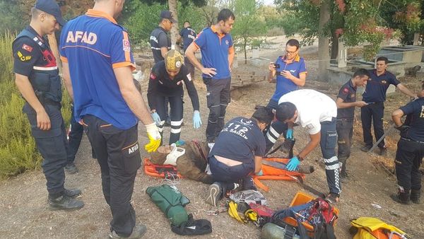 Aydın'ın Efeler ilçesinde gece yarısı Kızılcaköy Mezarlığı'ndan yükselen inleme sesleri çevre sakinlerini tedirgin etti. İhbar üzerine bölgeye giden jandarma ekipleri seslerin mezarlıktaki kuyuya düşen yaralı defineciden geldiğini tespit etti. Kurtarma ekiplerinin uzun uğraşları sonucu yaklaşık 20 metre derinliğindeki kuyudan Ü.İ. isimli şahıs kurtarılarak hastaneye kaldırıldı