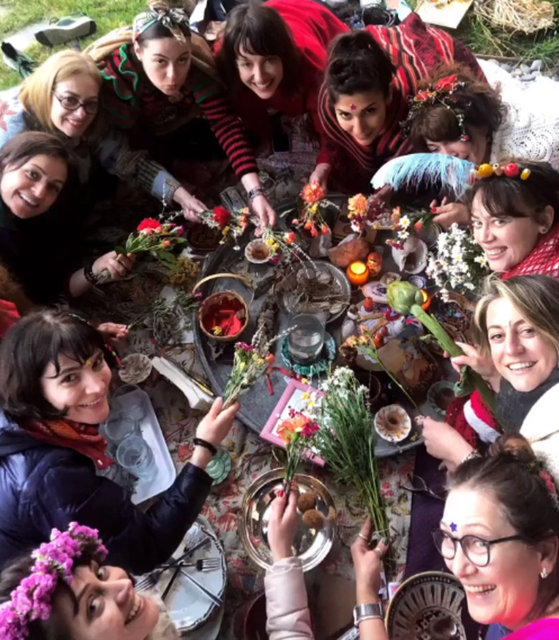 Bir çember oluşturarak yere oturan kadınlar ellerinde çiçekler, dillerinde dualarla; dünyaya gelecek olan 'Mavi'yi neşe içinde çağırdı.