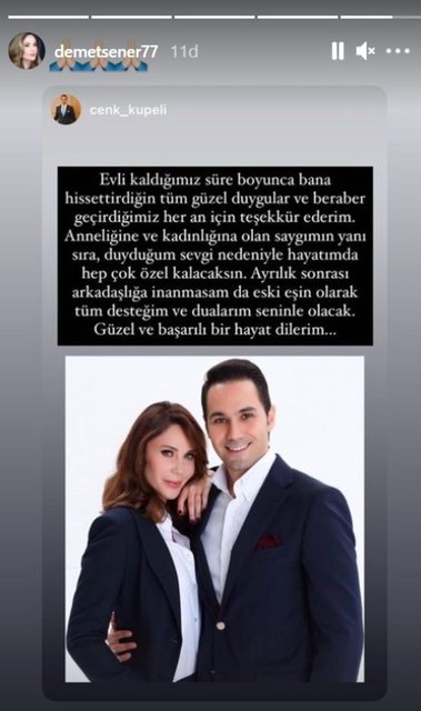 43 yaşındaki Demet Şener, eski eşinin bu sözlerini sosyal medya hesabından paylaştı.