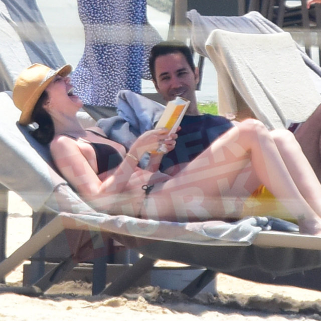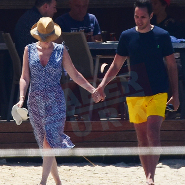 Önceki gün Turgutreis'te konakladıkları otelin plajında görüntülenen çiftin keyfi de bir hayli yerindeydi.