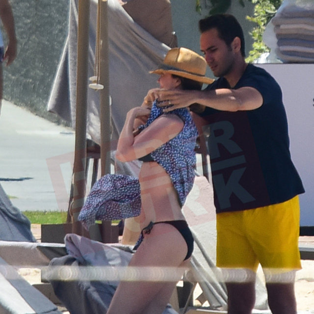Çift, daha sonra ise şezlonglarından kalkarak otellerine doğru yol aldı.