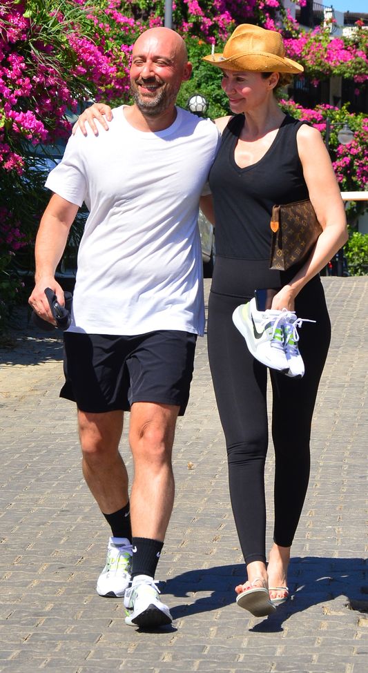 Bodrum'da tatil sezonunu açan Demet Şener-Tolga Arman çifti, yürüyüş yaparken objektiflere yansıdı