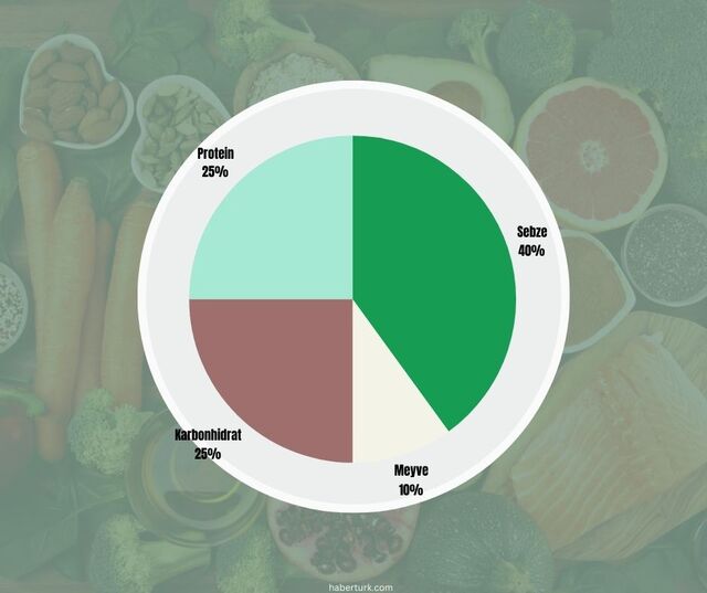 Harvard Üniversitesi'nin konu hakkında yaptığı çalışmaya göre yüzde 50'lik kısmını meyve ve sebzelerden oluşturmanız gerekiyor. Yüzde 40 sebze ve yüzde 10 meyveden oluşan bir oran doğru olacaktır.