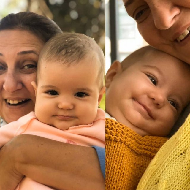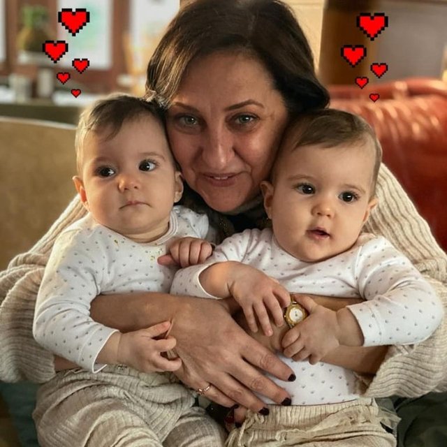 Salgından korunmak için kendisini karantinaya alan ve bu nedenle de torunlarını görmeye gidemeyen babaanne Deniz Berna Altan, Alin ve Lina ile fotoğraflarını sosyal medya hesabından yayınladı.