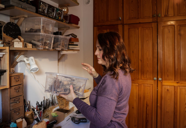 Eşimle beraber topluyoruz, kurutuyoruz. Atölyede ayrıştırıp temizliyorum, fırçalıyorum, bazılarını zımparalıyorum. Sonra bir araya gelmesi için bazılarını yontmam bazılarını kesmem gerekiyor."