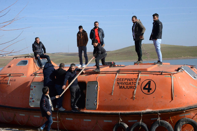 Bazen barajın üzerinde saatlerce kaldığımız oldu, günde bazen ortalama 10 sefer yapıyoruz. Filika da 69 emniyet kemeri var, bir kişi bile olsa sefer yapıyoruz. Bazen daha fazla kişi için sefer yapıyoruz, baraj su tutunca yol suyun altında kaldı. Diyarbakır'da deniz yok ona rağmen denizaltı getirdik.