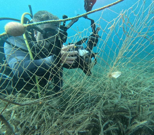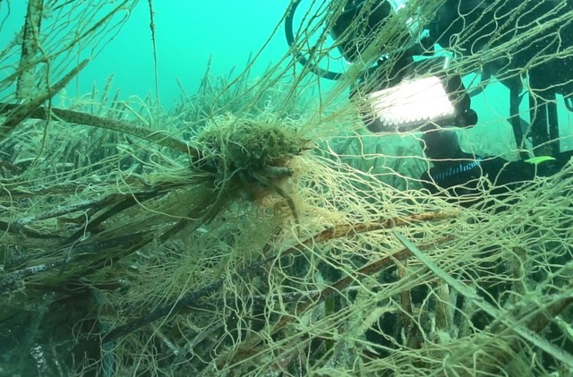 ÇOMÜ Deniz Bilimleri ve Teknolojisi Fakültesi Öğretim Üyesi Prof. Dr. Adnan Ayaz, hayalet ağın deniz ekosistemine verdiği zararı su altı kamerasıyla görüntüledi.