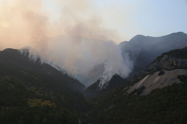 "Arazi çok sarp, kayalık, bu arazözlerimizin müdahalesini maalesef kısıtlı hale getirdi. İş makinalarıyla yangına ulaşabilmek için yol yapım çalışmalarına başladık. Şu an itibarıyla 7 noktadan iş makinalarıyla yaptığımız yollarda arazözlerle müdahale ederek yangını kontrol altına almaya çalışıyoruz. Hava araçlarının da bu yangında kullanıldığını biliyorsunuz. Biz pes etmiyoruz mücadelemize devam ediyoruz. Yol açma çalışmalarıyla bir an önce kontrol altına alabilmek için çalışmalarımızı sürdürüyoruz.
