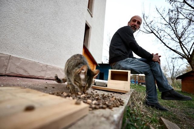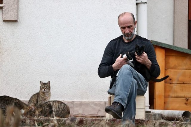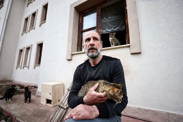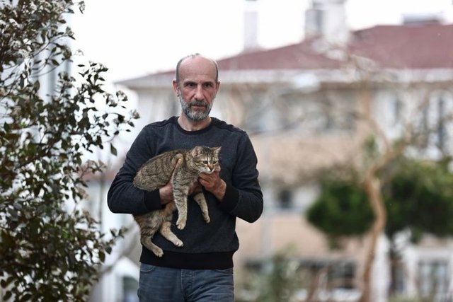 Kahramanmaraş merkezli, 6 Şubat'taki depremlerden etkilenen Hatay'ın Antakya ilçesinde arama kurtarma çalışmalarına Düzce'den katılan emekli madenci Dursun Altıntaş, binalarda mahsur kalan kedileri de kurtardı