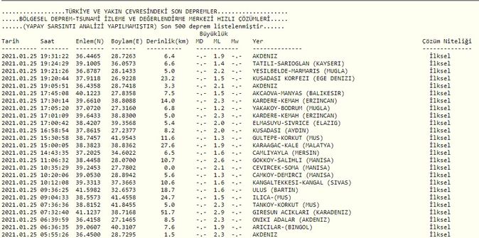 Türkiye'de son dakika depremleri yaşanmaya devam ediyor. Gün itibariyle Ege ve Akdeniz bölgelerinde yaşanan son depremler sonrası vatandaşların aramaları iyice arttı. İşte 25 Ocak son dakika Kandilli Rasathanesi son depremler haritası...