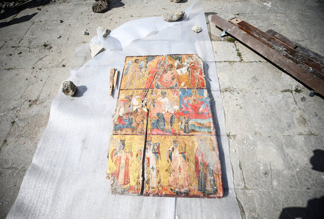 "Çıkarılan ikonalar arasında önemli sahneler var. Hazreti Meryem'in göğe yükselişi, Kudüs'e giriş, Hazreti İsa'nın vaftiz edilişi, Pantokrator (Hazreti İsa'nın tasvir edildiği bir sahne) olmak üzere önemli sahnelere sahip ikonaları enkazdan kurtardık.