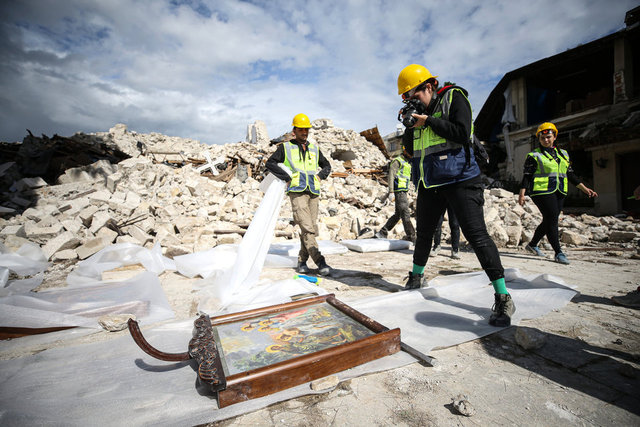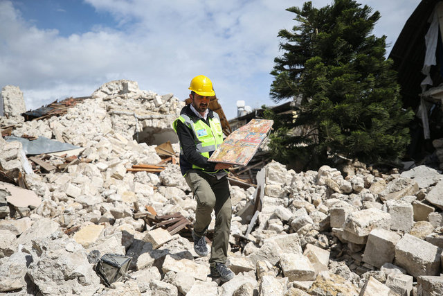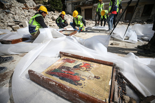 Depremde yıkılan kilisenin enkazından çok sayıda ikona ve İncil çıkarıldı