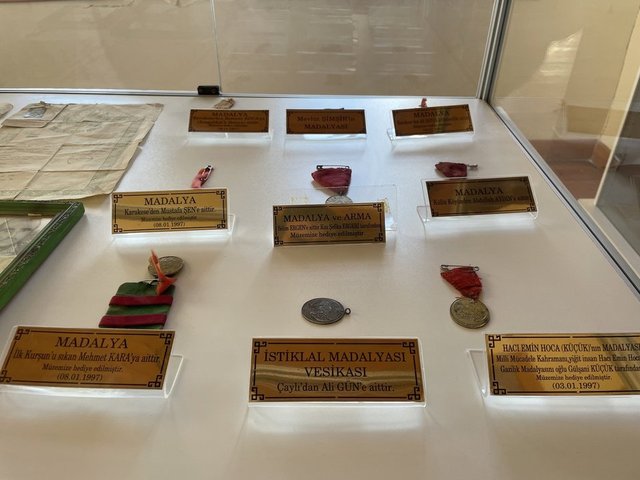 Şu anda müzemiz ziyaretçilere açık durumda. O dönemde kullanılan kılıç, kama, silah ve mermilikleri insanlarımız atalarından yadigar kalanları saklamışlar, müzemize bunları hediye ettiler, biz de sergiliyoruz."
