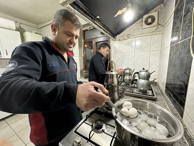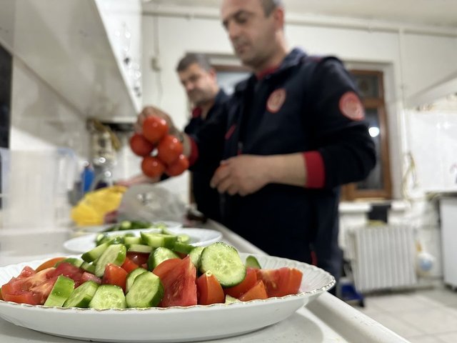 Her zaman olduğu gibi sahurumuzu yapıyoruz bir yandan da 7/24 Elazığ'da görev yapmaktayız. İtfaiyeciler olarak bir aileyiz, tam da şu zaman en çok vakit geçirdiğimiz zamanlar. Hem sahur hem oruç bir yandan da insanlara da yardımcı olmaya çalışıyoruz.