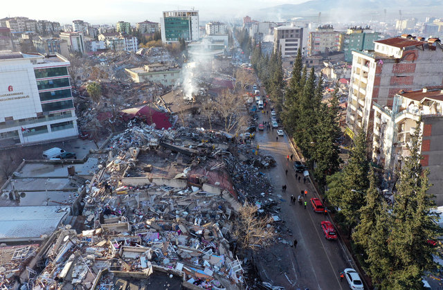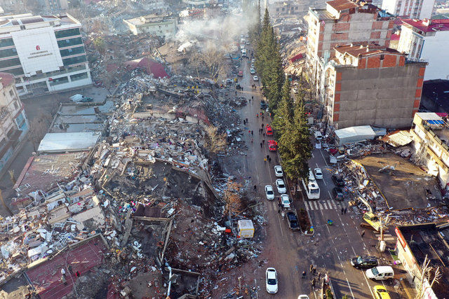 Kahramanmaraş'ta 7,7 büyüklüğündeki ilk deprem sonrası şehir merkezindeki Trabzon Caddesi'nde onlarca bina yıkıldı. Kentin en işlek yerlerinden Trabzon Caddesi'nin, depremden önce çekilen fotoğraflarında bitişik halde çok sayıda 7-8 katlı bina olduğu görülüyor