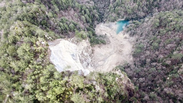 AA'nın haberine göre Payas ilçesine bağlı Sincan Mahallesi sınırlarındaki dağlık bölgede yüksek rakımlı bir dağın zirvesinden kopan büyük kütle, Amanos Dağları'ndan doğan ve Payas Vadisi boyunca uzanan Akçay Deresi'nin önünde set oluşturdu.